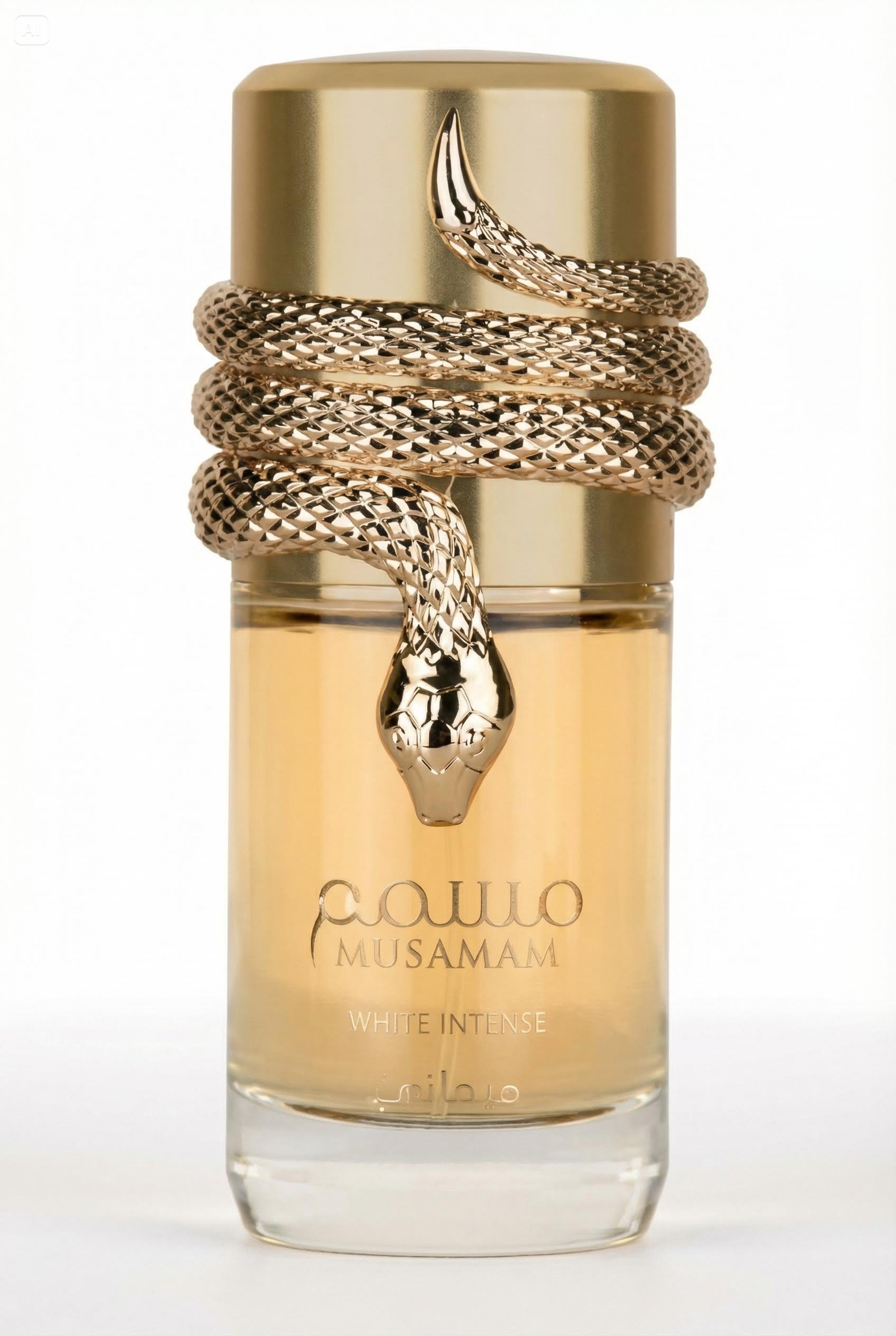 ​Sua abertura cítrica e picante evolui para um coração exótico e luxuoso, onde o Ylang Ylang e o coco criam uma sensação de ‘pele beijada pelo sol’. O fundo de sândalo e benjoim garante uma base aveludada e de altíssima fixação. O frasco, adornado com uma serpente dourada, é um símbolo de tentação e poder, tornando-o uma peça de destaque em qualquer coleção. Se você busca um perfume unissex que transmite ‘riqueza’, elegância e exclusividade, o Musamam White Intense é a escolha perfeita.”